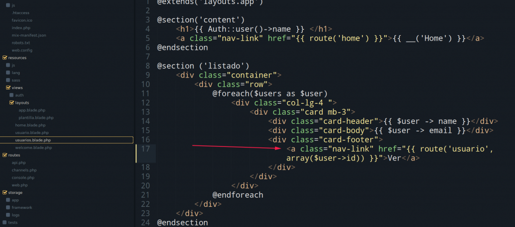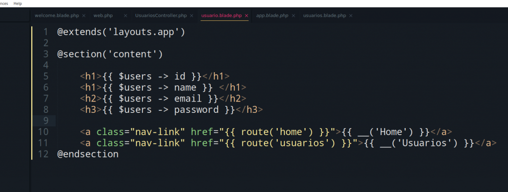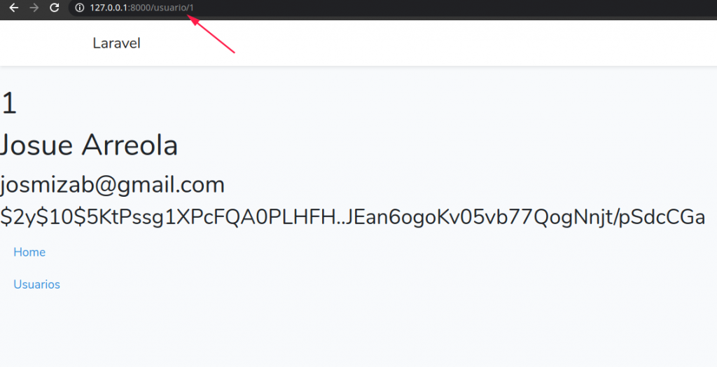 4.- Creamos la vista usuario.blade.php y mostramos la información del usuario
